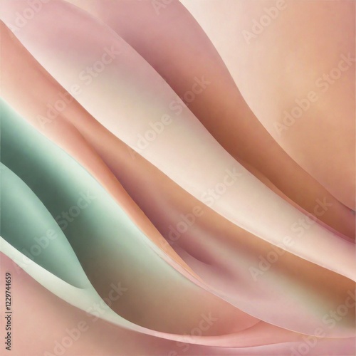 Abstract wavy art in soft pastel colors including peach, pink, and green with a smooth fluid appearance, AI generated