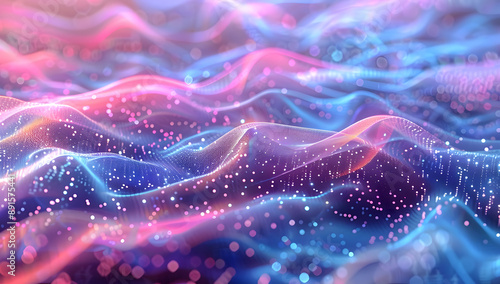 Abstract Wavy Background With Blue and Pink Gradient and Sparkle Effect