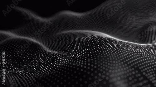 Abstract wavy dot pattern on black background: elegant digital landscape