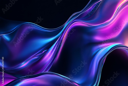 Abstract Wavy Flow with Neon Glowing Light Effects on Dark Background