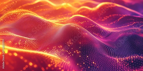 Abstract Wavy Landscape of Glowing Particles with Warm Color Gradient