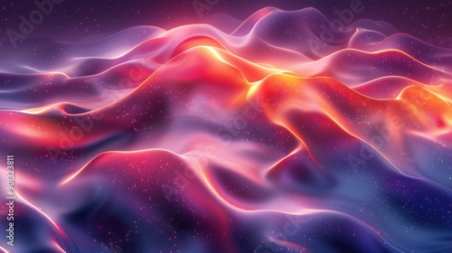 Abstract Wavy Landscape with Glowing Colors and Shimmering Particles