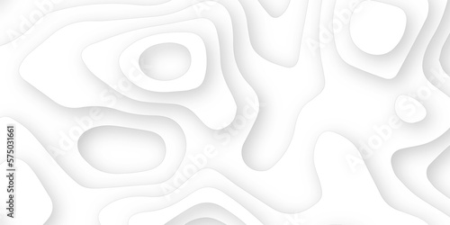 Abstract wavy line 3d paper cut white background. Topographic canyon geometric map relief texture with curved layers and shadow. Abstract realistic papercut decoration textured with wavy layers