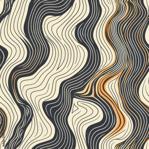 Abstract Wavy Line Pattern in Neutral Tones with Gold Accents