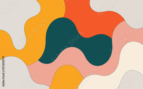 Abstract wavy shapes background in retro colors: orange, green, yellow, pink and beige. Stylish design for prints, backgrounds, web design.