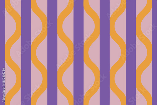 Abstract Wavy Vertical Stripes Lilac, Purple, Gold Seamless Retro Pattern