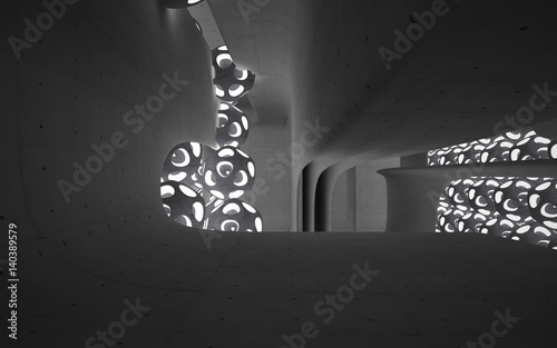 Abstract white and black parametric interior with window. 3D illustration and rendering.
