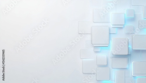 Abstract White and Blue Geometric Background with Illuminated Cubes