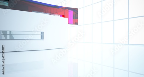 Abstract white and colored gradient glasses interior multilevel public space with window. 3D illustration and rendering.