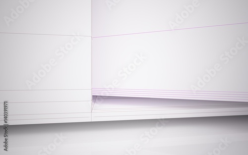 Abstract white and concrete parametric interior with window. 3D illustration and rendering.