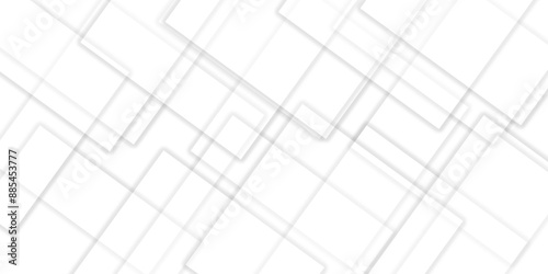 Abstract white background design with layers of textured white transparent material in triangle and squares shapes. White color technology concept geometric line vector white light grey background.