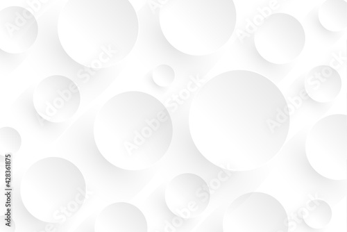 Abstract white background with 3D circles pattern, interesting white grey vector background illustration.