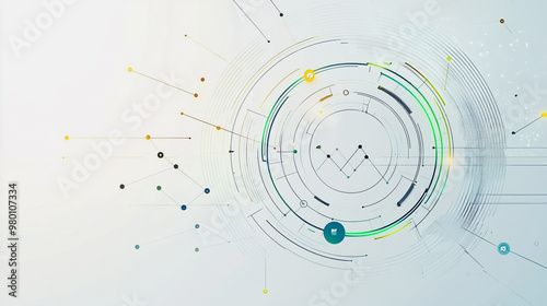 Abstract white background with Colorful circle lines. Digital future technology . Abstract business connection of lines from nodes innovation of communication in the network.