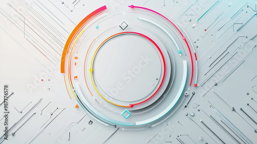 Abstract white background with Colorful circle lines. Digital future technology . Abstract business connection of lines from nodes innovation of communication in the network.
