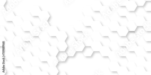 Abstract white background with hexagons pattern. White abstract vector wallpaper with hexagon grid. Technology Futuristic honeycomb emboss mosaic white background.