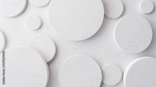 Abstract white circles with shadow background.