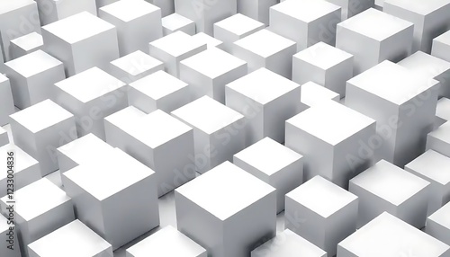Abstract White Cubes Form a Complex Three Dimensional Pattern