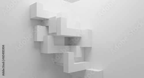 Abstract White Geometric Wall Art with 3d Blocks in Modern Interior