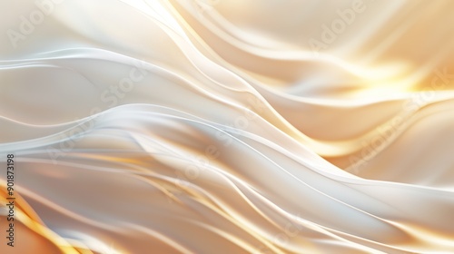 Abstract white golden background with silky smooth waves. Generative AI