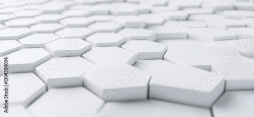 Abstract white hexagonal pattern with 3D geometric shapes and smooth surfaces