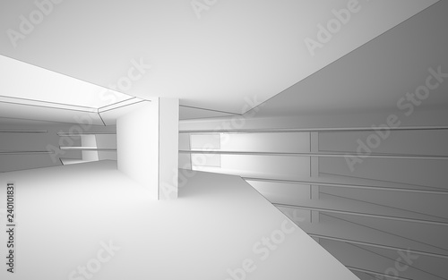 Abstract white interior highlights future. Polygon black drawing. Architectural background. 3D illustration and rendering