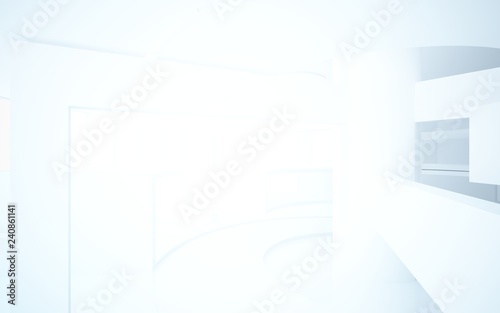Abstract white interior multilevel public space with window. 3D illustration and rendering.