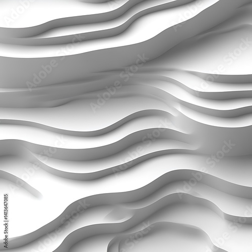 Abstract white layered relief pattern. Complex 3D textured surface with undulating forms