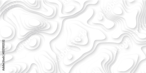 Abstract white paper cut background with lines. Background of the topographic map. White wave paper curved reliefs abstract background. Realistic papercut decoration textured with wavy layers.