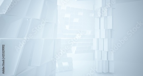 Abstract white parametric interior with window. 3D illustration and rendering.