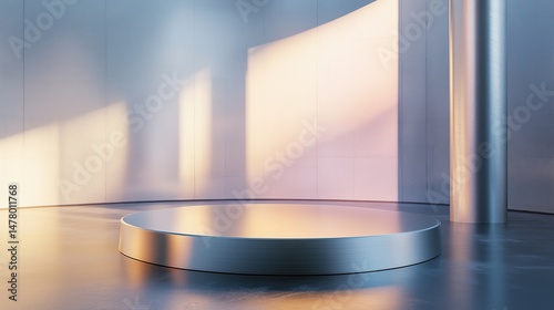 Abstract white pedestal with peach and lavender fluid backdrop for presentation design