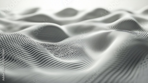 Abstract white surface with undulating lines and dot matrix pattern creating a fluid effect