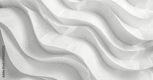 Abstract White Wavy Surface with Geometric Shapes and Soft Shadows