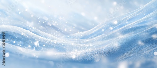 Abstract winter background with soft light blue snow drifts and sparkling snowflakes.