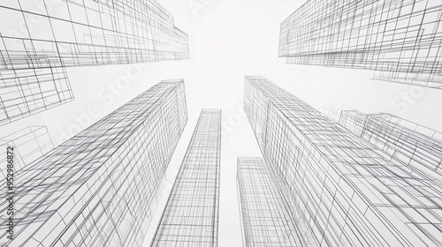 Abstract wireframe city background. Perspective 3D rendering of building wireframe. Nice vector