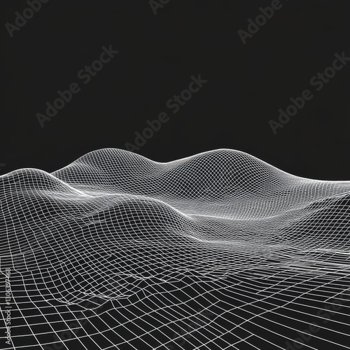Abstract Wireframe Landscape: Minimalist Black and White Geometric Grid Illusion on Hills