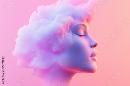 Abstract woman head in clouds, vibrant colors, artistic studio shot, digital art, profile view