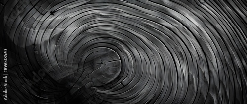 Abstract wood grain background with circular rings and swirls in monochrome grey tones. Abstract wood texture.