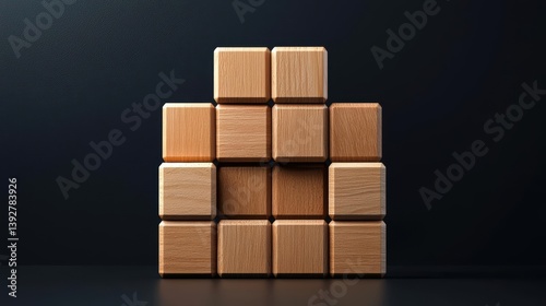 Abstract wooden cubes stacked in an artistic arrangement, creating a modern gallerystyle display