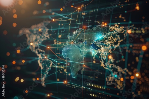 Abstract world map, concept of global network and connectivity, international data transfer and cyber technology, worldwide business