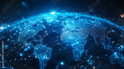 Abstract world map, concept of global network and connectivity, international data transfer and cyber technology, worldwide business, information exchange and telecommunication