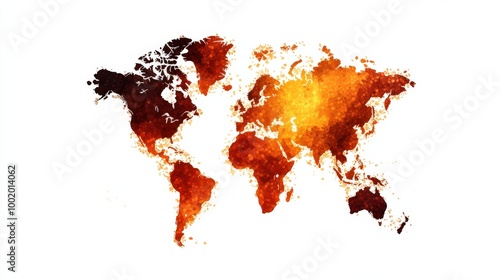 Abstract world map in warm tones, white isolated background.