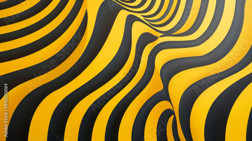 Abstract Yellow and Black Striped Pattern with Optical Illusion
