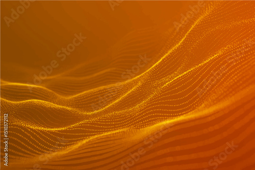 Abstract yellow and orange background with flowing particles. Digital future technology concept. vector illustration.