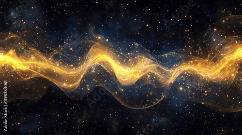 Abstract yellow energy wave pulsing through a dark cosmic background