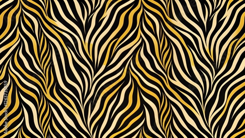Abstract Zebra Stripes Pattern, Gold and Black Animal Print Texture