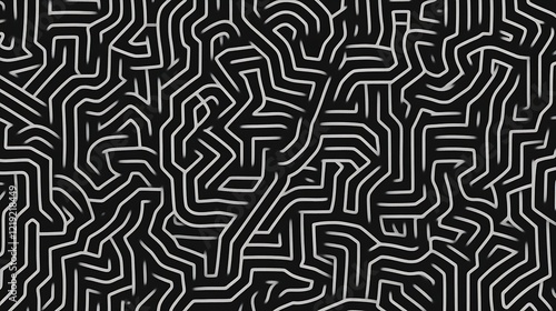 Abstract Zigzag Maze Pattern with Intricate Pathways in a Monochrome Design Ideal for Creative Projects and Backgrounds