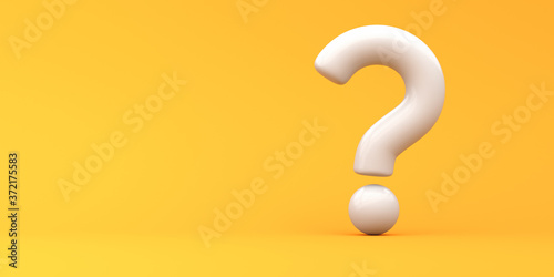 Abstraction illustration. Big shiny white question mark on a yellow background. 3d render illustration. Illustration for advertising.