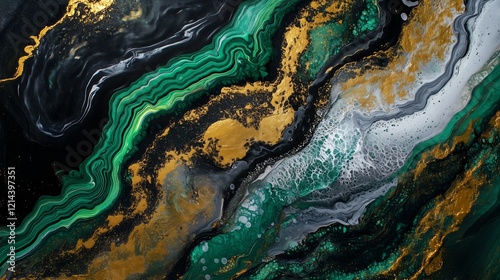 Abstraction of impasto painting, thick strokes of dense, undiluted paint, colors bright neon green, gold, white, painting is distinguished by its expression, brightness, dense layer of paint