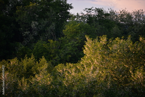 acacia tree in blooming period. Robinia pseudoacacia flowers