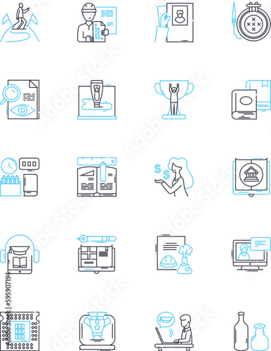 Academic instruction linear icons set. Education, Learning, Instruction, Curriculum, Pedagogy, Classroom, Lecture line vector and concept signs. Homework,Assessments,Exams outline illustrations